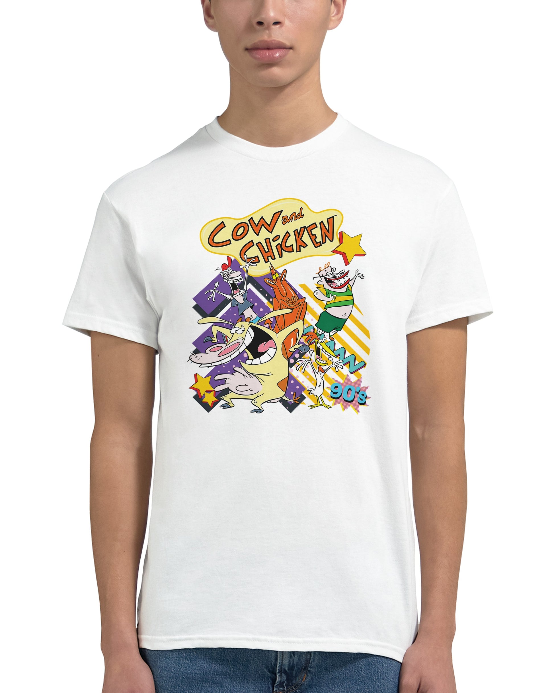 Step back into nostalgia with a cow and chicken retro t-shirt. This t-shirt is a perfect blend of style and comfort, making it the ultimate casual wear for fans of the classic tv show.